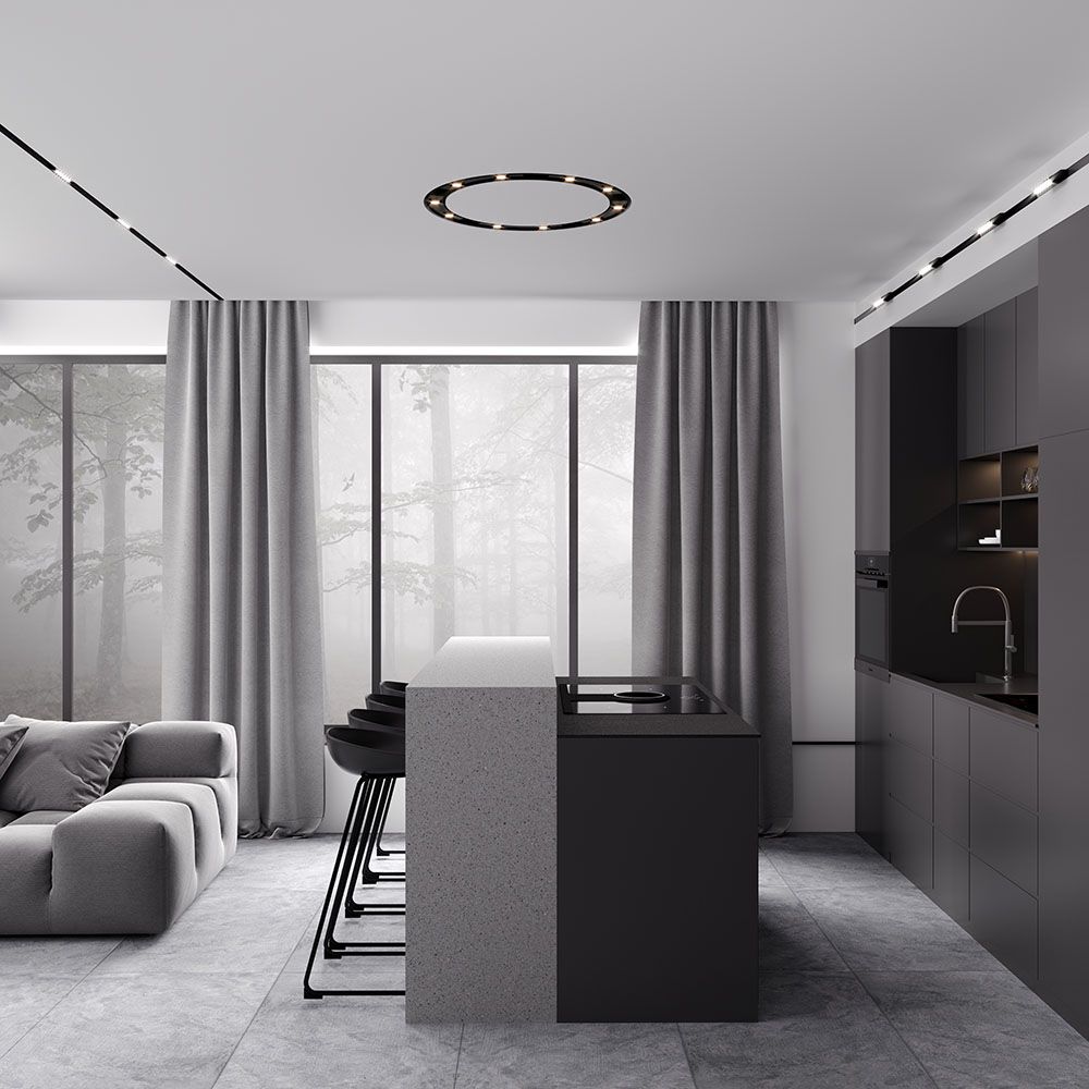 The main advantages of the line are power and brightness. The CIRCLE series of luminaires is made of durable and lightweight aluminum in black. It has 3 options for mounting and location on the ceiling, which significantly expands the range of its applications in various interior solutions. The location of the lamp can be easily adjusted to the height you need. CIRCLE is the choice of aesthetes!